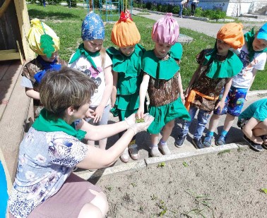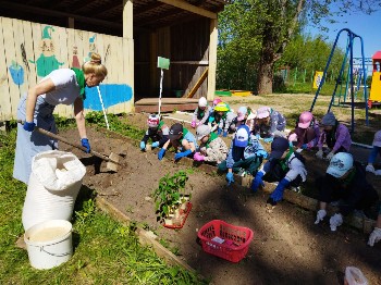 Итоговым мероприятием стала посадка семян кустарников горной сосны и можжевельника на территории детского сада на экологической тропе, с участием сотрудника лесного хозяйства районного лесничего Уренского района лесничества министерства лесного хозяйства и охраны объектов животного мира Нижегородской области Плешакова Евгения Геннадьевича.